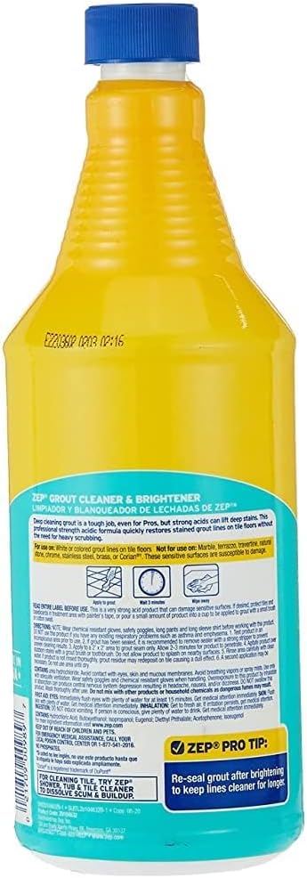 Zep Grout Cleaner and Brightener is more than just a stain removerâit's a complete solution for maintaining the beauty of your tile floors. The bleach-free formula ensures it's safe for use on various grout types, including white and colored, protecting the color and integrity of your surfaces. This product is ideal for busy households looking for a quick yet effective way to keep their floors clean and looking great.